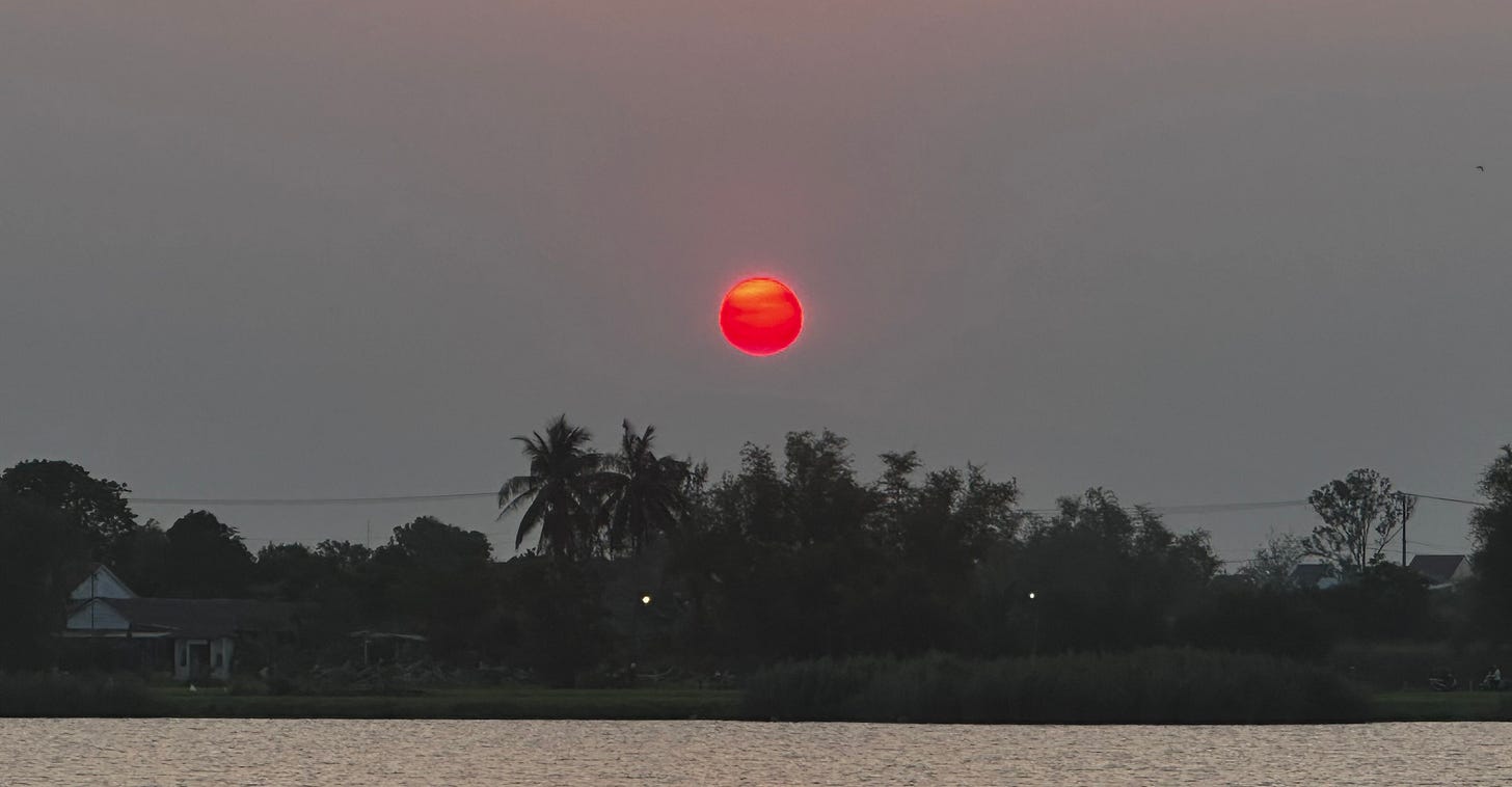 The sunset is different every day; sometimes it serves a spectacular view, drawing out the deep green of the rice fields with its strokes of orange, pink, and gold. Sometimes it burns as a rust-red cigarette cherry against a dark grey sky. Sometimes it’s swallowed by thick clouds before it has a chance to make its mark.